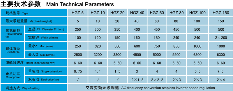 根據工件直徑大小自動調節滾輪的擺角,無須人工調節。聚氨酯滾輪,承載能力大,驅動力強。根據驅動方式分為單驅動、雙驅動兩種形式。